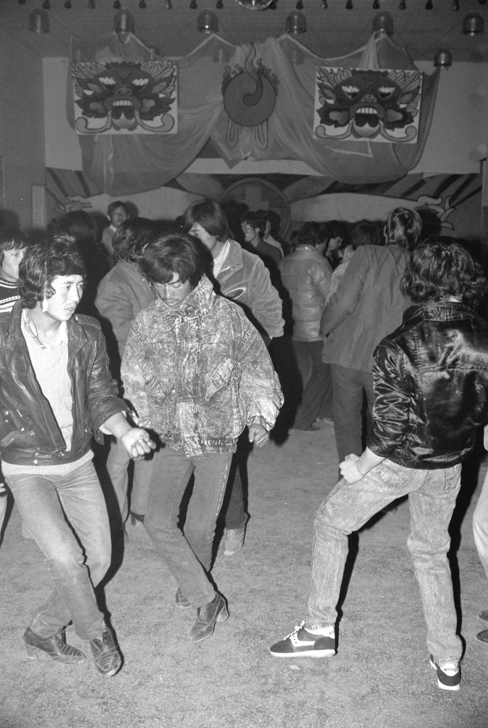 藏歷新年前夕,拉薩一家有現(xiàn)代化設(shè)施的舞廳開業(yè),能歌善舞的藏族男女青年很快喜愛上了迪斯科。舞廳設(shè)在拉薩市日光城賓館內(nèi),建筑面積為849平方米,可同時接待250多人。 (1988年攝)