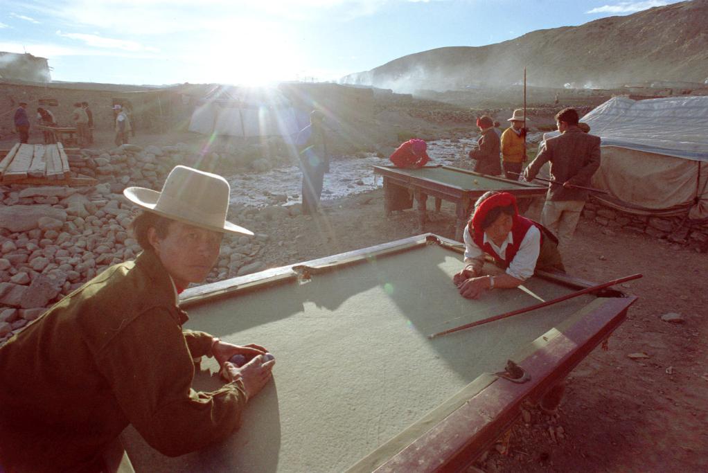 阿里地區(qū)普蘭縣的青年人在打臺球。 (1996年9月9日發(fā))