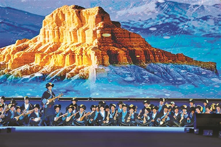 開幕式通過“線上直播+現(xiàn)場觀演”模式,為現(xiàn)場各界來賓、干部群眾及線上觀眾,呈現(xiàn)了一場內(nèi)容豐富、形式多元、內(nèi)涵深刻的視聽盛宴。此次演出時長約80分鐘,投入演職人員300余人次,共呈現(xiàn)13個特色節(jié)目。演出以弘揚優(yōu)秀傳統(tǒng)文化和鑄牢中華民族共同體意識為基調(diào),大膽革新藝術(shù)表達(dá)形式,將“音、舞、詩、畫”巧妙融合,并鑲嵌濃郁的阿里地域文化元素,通過多元文化交融的舞臺敘事,生動詮釋中華民族“多元一體、和諧共生”的深刻內(nèi)涵,實現(xiàn)歷史與人文的激情碰撞。