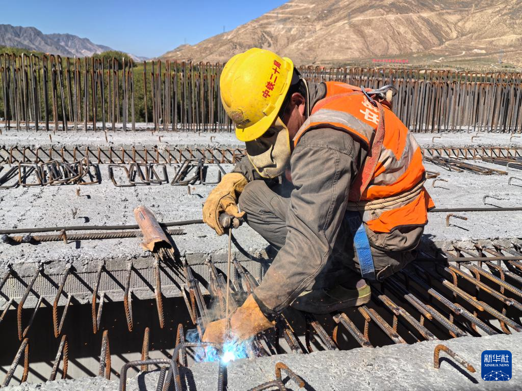 施工人員在薩熱路跨江大橋建設(shè)現(xiàn)場工作(10月13日攝)。新華社發(fā)(帥卿 攝)