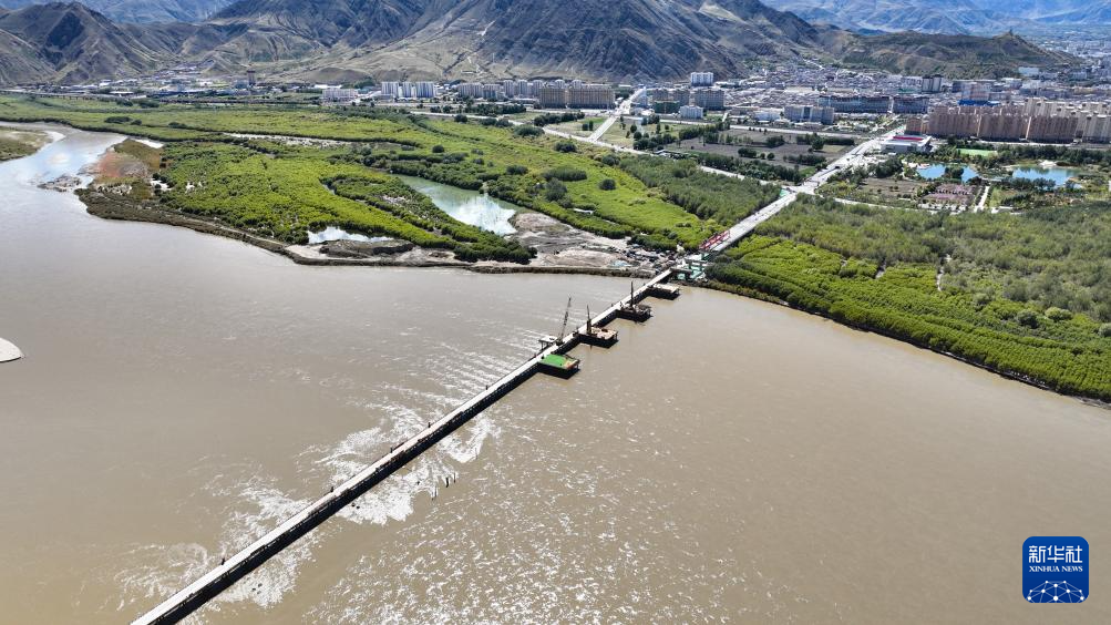 建設(shè)中的薩熱路跨江大橋(無人機照片,9月26日攝)。新華社記者 晉美多吉 攝