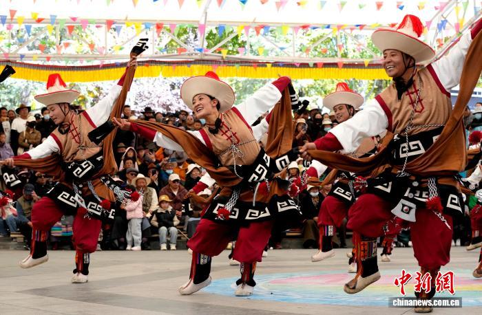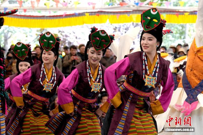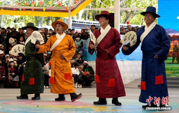 10月19日,“格?;ū崩_市第六屆縣(區(qū))藝術(shù)團(tuán)文藝調(diào)演頒獎(jiǎng)活動(dòng)在布達(dá)拉宮腳下的宗角祿康公園舉行。現(xiàn)場,拉薩市各縣(區(qū))藝術(shù)團(tuán)帶來精彩節(jié)目。圖為文藝調(diào)演頒獎(jiǎng)活動(dòng)上的文藝表演。中新社記者 李林 攝