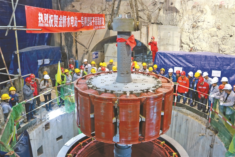 那曲易貢藏布金橋水電站一號機組轉子吊裝現(xiàn)場(資料圖片)。圖片由那曲市能源局提供