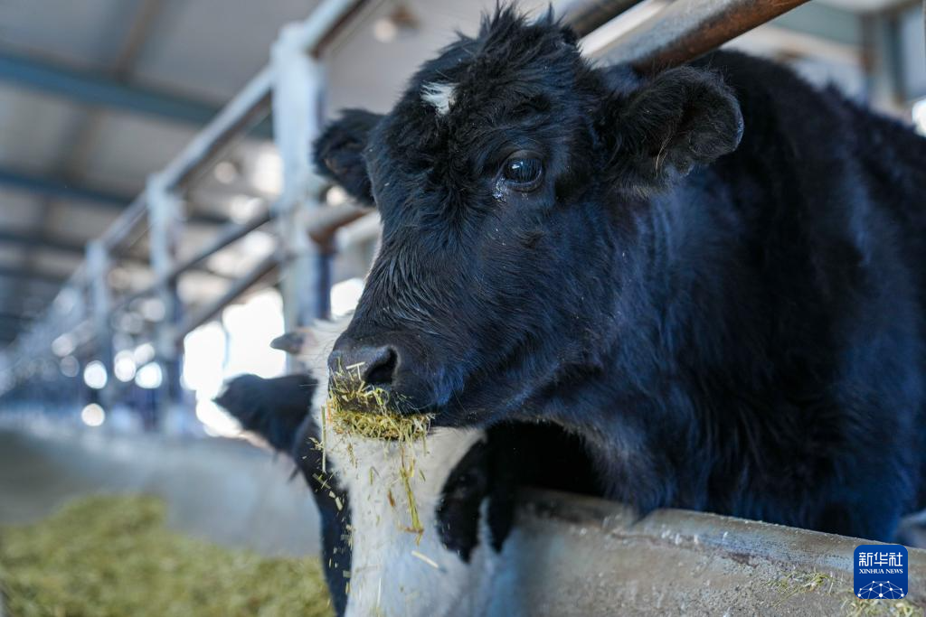 12月3日,克隆樟木牛母犢在西藏動物疫控中心(區(qū)畜牧總站)曲水實驗站牛場吃草料。新華社記者 丁增尼達(dá) 攝