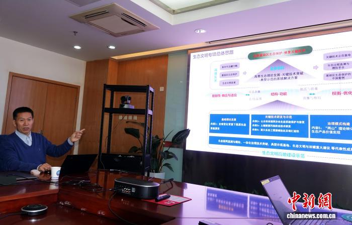 梁爾源研究員介紹青藏高原植樹造林相關(guān)研究整體進(jìn)展情況。中新網(wǎng)記者 孫自法 攝