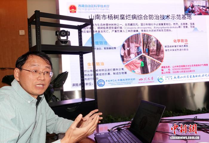張更新研究員介紹青藏高原楊樹病害防治研究進(jìn)展。中新網(wǎng)記者 孫自法 攝
