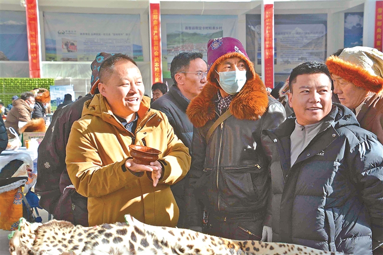 這次展銷會不僅線下熱鬧,線上也同樣火爆。為了讓各類產(chǎn)品走得更遠,展銷會特意搭建起“線上直播帶貨+線下現(xiàn)場選購”的雙線銷售通道,一邊是線下市民現(xiàn)場挑、現(xiàn)場買,新鮮看得見、品質(zhì)摸得著;一邊是主播對著鏡頭,向全國網(wǎng)友推介那曲好物,讓遠在千里之外的消費者也能品嘗到那曲味道。同時,展銷會還邀請電商平臺、采購商代表和參展商精準(zhǔn)對接,幫本土農(nóng)畜產(chǎn)品打通銷路,再也不愁“酒香巷子深”;積極引導(dǎo)機關(guān)、企事業(yè)單位及社會各界參與消費幫扶,以“以購代扶”“以買促銷”的方式助力本土產(chǎn)業(yè)發(fā)展,在全市形成“人人支持本土產(chǎn)業(yè)、人人參與鄉(xiāng)村振興”的濃厚氛圍。