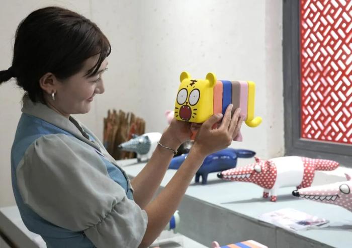 2025年8月6日,西藏拉薩蓮華之寶中華藏瓷文化旅游體驗(yàn)園景區(qū)里,工作人員展示卡通陶瓷工藝制品。該體驗(yàn)園集展覽、銷(xiāo)售與文化體驗(yàn)于一體,通過(guò)與高校開(kāi)展校企合作等方式,將唐卡繪畫(huà)藝術(shù)與陶瓷工藝結(jié)合,傳播優(yōu)秀傳統(tǒng)文化。中新社記者 李林 攝