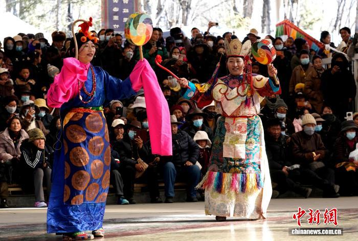 1月2日,“新歲風(fēng)華,衣彩拉薩”2026年拉薩新年服飾秀子活動在布達拉宮腳下的宗角祿康公園舉行?;顒臃譃槔_非物質(zhì)文化遺產(chǎn)代表性項目演藝服飾秀與農(nóng)牧民婦女“村T”秀兩部分,通過演藝服飾與日常生活勞動服飾及場景的展示,生動呈現(xiàn)拉薩獨特的地域文化與民族風(fēng)情。圖為拉薩非物質(zhì)文化遺產(chǎn)代表性項目演藝服飾秀現(xiàn)場。中新社記者 李林 攝