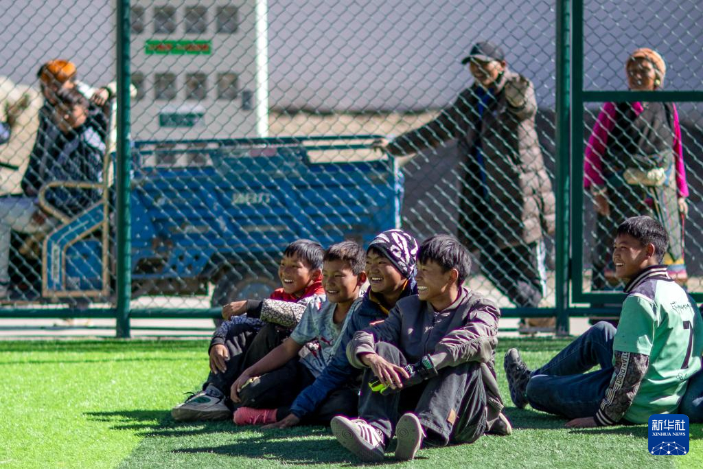 1月5日,在森嘎村的足球場(chǎng)上,少年在觀看伙伴們踢球。新華社記者 姜帆 攝