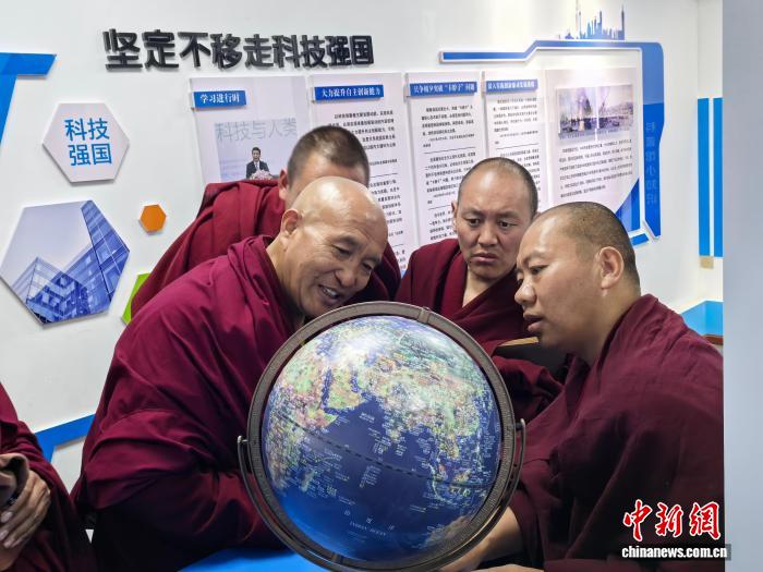 圖為僧人在館內(nèi)學(xué)習(xí)科普知識(shí)。曲桑 攝