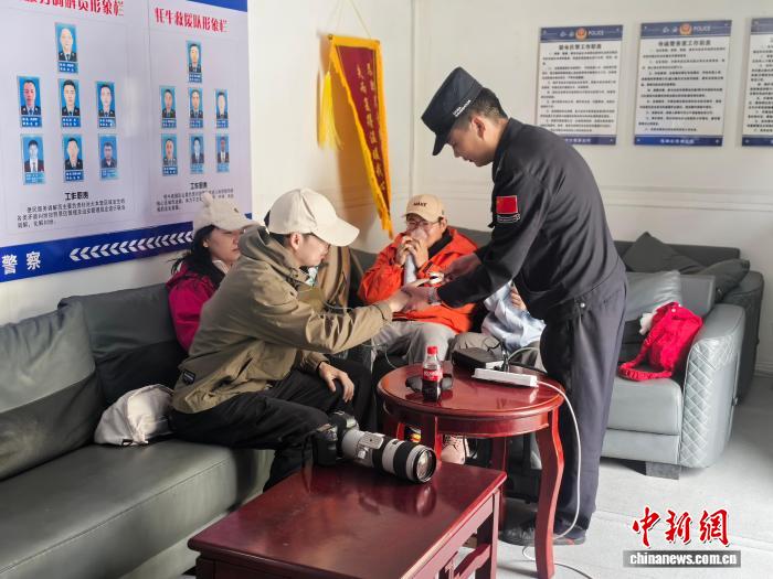 圖為珠峰邊境派出所民警為游客咨詢提供幫助指引。索朗怕加 攝