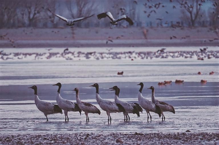 活動當(dāng)日,學(xué)員們在前黑頸鶴巡護(hù)員旦增的帶領(lǐng)下,深入卡孜水庫、虎頭山水庫等黑頸鶴核心棲息地,沉浸式體驗日常巡護(hù)工作,學(xué)習(xí)排查網(wǎng)圍欄安全隱患、監(jiān)測黑頸鶴覓食與健康狀況、投喂青稞等實操技能,直觀了解黑頸鶴生存與高原生態(tài)環(huán)境的緊密關(guān)聯(lián)。