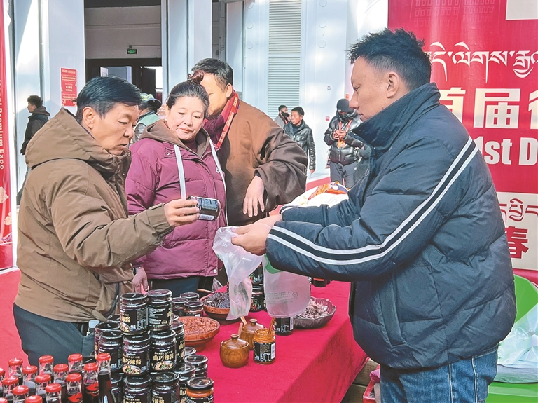 圖為市民在博覽會(huì)上選購(gòu)辣椒醬。記者 央金 攝