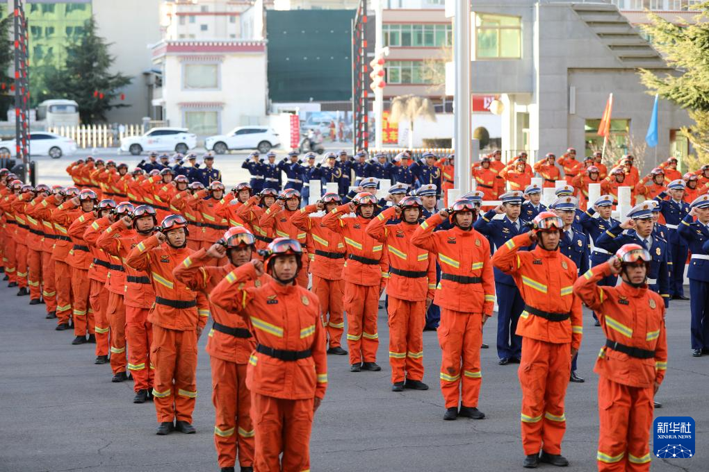 這是2月5日拍攝的拉薩消防救援機(jī)動(dòng)支隊(duì)掛牌儀式現(xiàn)場(chǎng)。新華社發(fā)(鄭龍 攝)