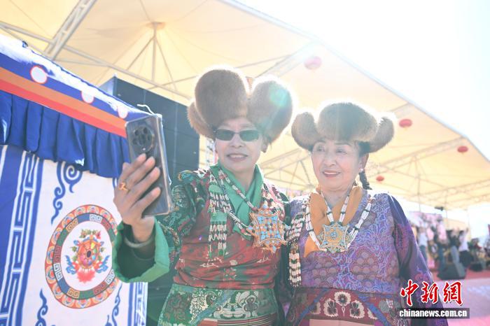 圖為西藏自治區(qū)群藝館老年藝術(shù)團演員拍照留念。中新社記者 貢嘎來松 攝