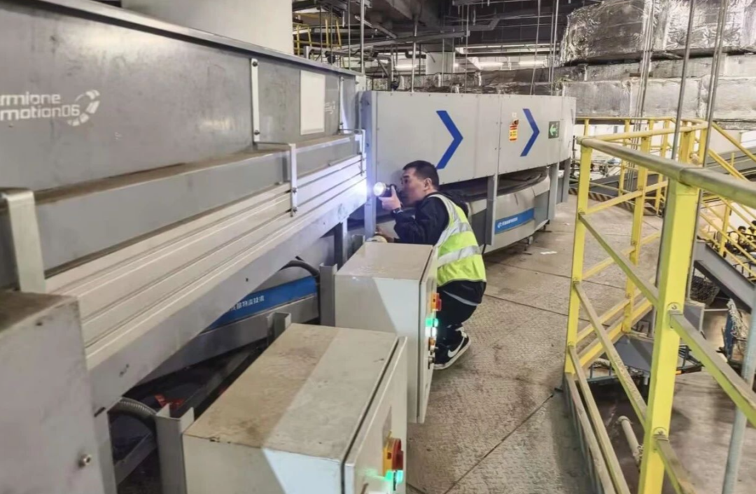 圖:機電設(shè)備運維員對行李系統(tǒng)開展全面檢查