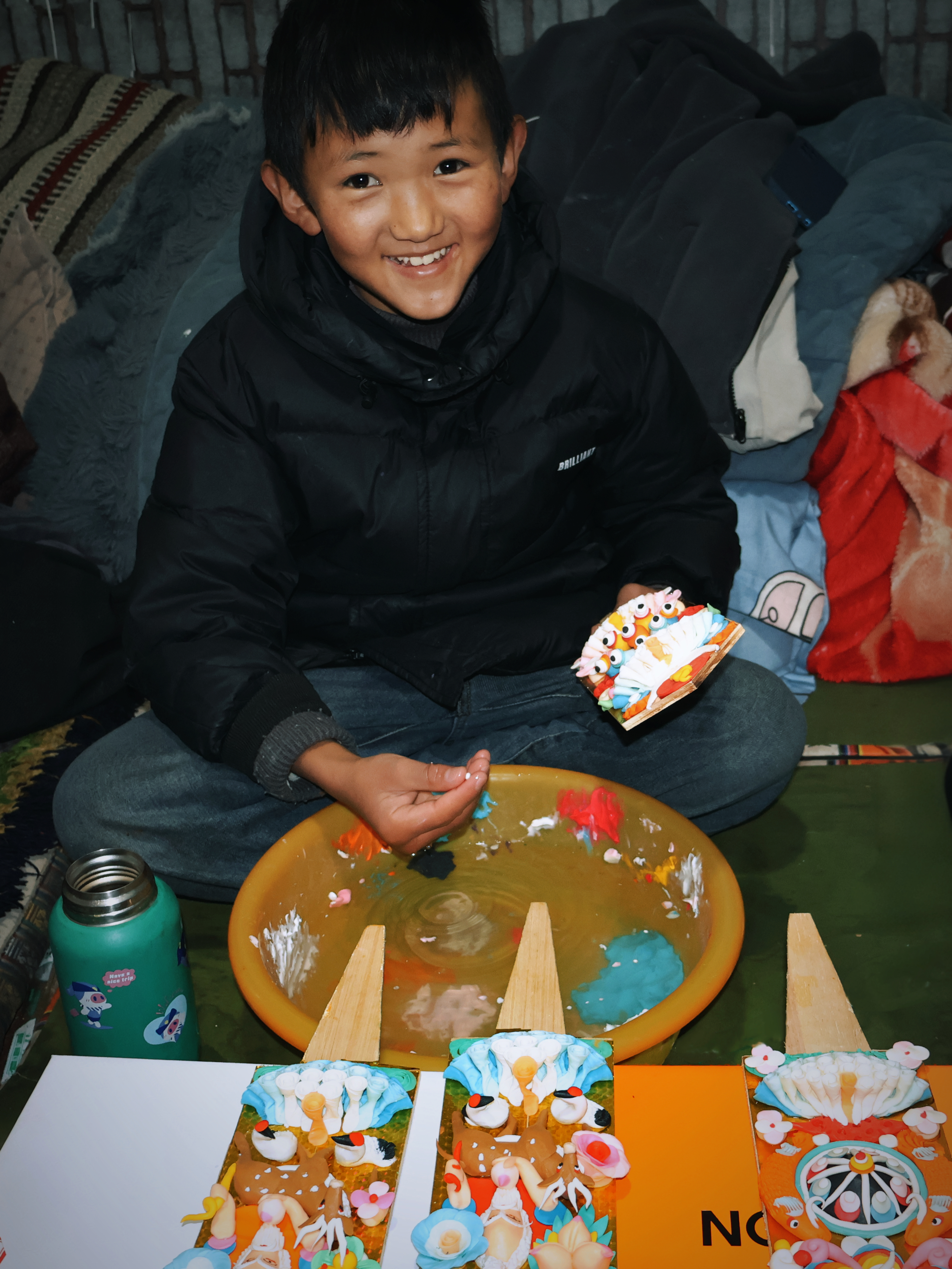 他叫平措,正埋頭專注地整理材料,不時還會拿起一塊酥油,嘗試著捏出簡單造型。