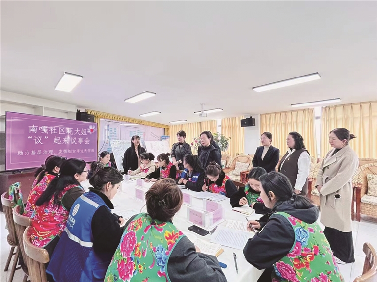 依托區(qū)委“聚龍”黨建品牌,堆龍德慶區(qū)婦聯(lián)培育“龍姐”為民服務(wù)品牌,打造有溫度的服務(wù)名片。張峰瑋表示:“要讓‘龍姐’成為婦女最親近的依靠?!比缃窬S權(quán)幫扶、政策宣講等服務(wù)已實(shí)現(xiàn)全域覆蓋,“找龍姐、信龍姐、靠龍姐”成為群眾共識(shí),婦聯(lián)凝聚力持續(xù)增強(qiáng)。同時(shí),聚焦基層治理,堆龍德慶區(qū)婦聯(lián)推動(dòng)?jì)D女議事會(huì)擴(kuò)面增效,阿佳“議”起來(lái)議事會(huì)、“花大姐”議事會(huì)等在各村(社區(qū))蓬勃開(kāi)展,引導(dǎo)婦女從旁觀者轉(zhuǎn)變?yōu)橹魅宋?,以女性智慧為鄉(xiāng)村振興注入活力。張峰瑋說(shuō):“要讓婦女敞開(kāi)心扉聊家事、議村事,讓心聲有人傾聽(tīng)、訴求有人回應(yīng)。”