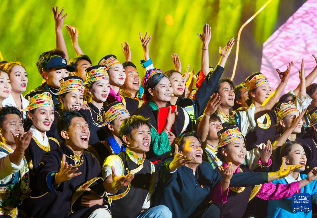 這是4月3日拍攝的林芝第二十三屆桃花旅游文化節(jié)開幕式文藝演出現(xiàn)場(chǎng)。新華社記者 丁增尼達(dá) 攝