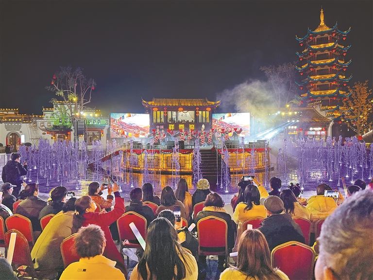 在湖北省云夢縣博物館里,古老藏戲與千年秦簡隔空對話;在祥云灣文旅景區(qū)音樂噴泉舞臺上,《吉祥昂仁》藏戲舞演員宛如格?;ㄊ㈤_在水光瀲滟間;在楚王天下大舞臺上,《大鵬山》六弦琴音雄渾豪邁、舞步粗獷奔放,將神山的巍峨與雪域的壯闊搬到江漢平原;在胡金店萬畝油菜花海中,《多彩的哈達》為春日花海增添了濃郁的民族風(fēng)情;在安陸、孝昌等周邊縣市,《同心結(jié)·幸福緣》舞蹈節(jié)奏歡快、《日喀則我為你牽掛》三重唱旋律悠揚,將高原遼闊與南國柔美完美融合……