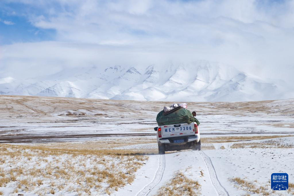 4月9日,羌塘國家級自然保護(hù)區(qū)那曲地區(qū)管理局專業(yè)管護(hù)隊(duì)趕往“巴毛窮宗”。新華社記者 姜帆 攝