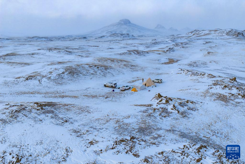 4月11日,羌塘國家級自然保護(hù)區(qū)那曲地區(qū)管理局專業(yè)管護(hù)隊(duì)在“巴毛窮宗”地區(qū)雪中宿營(無人機(jī)照片)。新華社記者 姜帆 攝