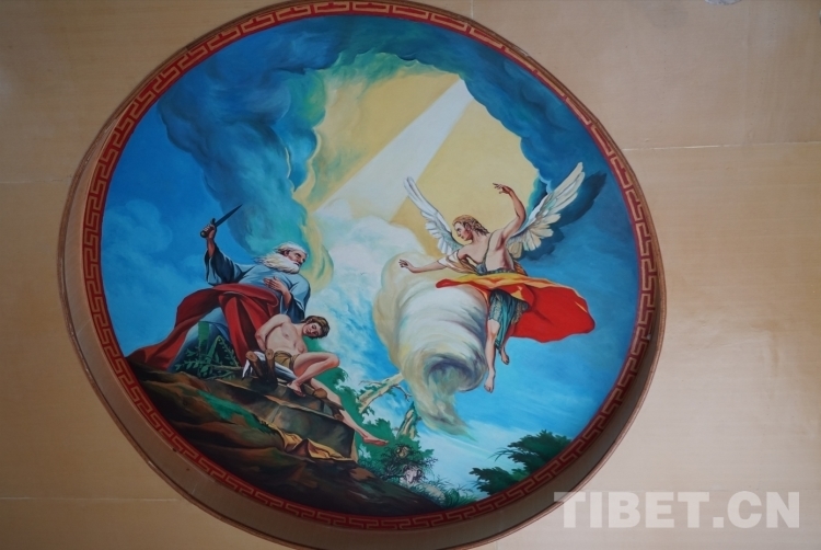 圖為阿多在耶穌、圣母瑪利亞像上懸掛哈達(dá)