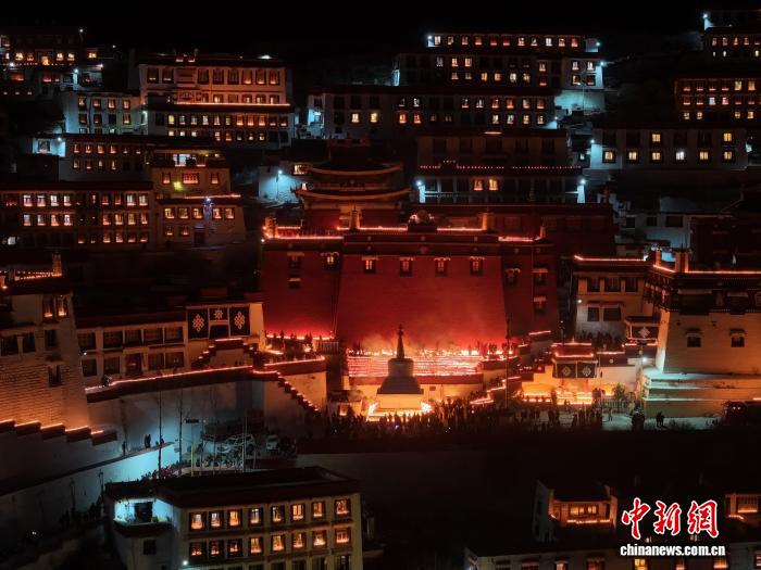 圖為燃燈日酥油燈點亮甘丹寺。 中新社記者 貢嘎來松 攝