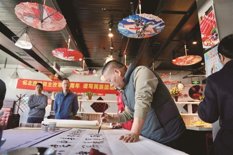 活動現(xiàn)場,暖意融融、氣氛熱烈。愛心餐飲企業(yè)精心準備了暖心餐食,傳遞社區(qū)溫情。自治區(qū)政協(xié)委員南杰旺扎、羅布元旦和多位書法老師即興揮毫潑墨,創(chuàng)作了一批以民族團結(jié)為主題的書法佳作贈予一線環(huán)衛(wèi)工人與各族群眾代表,既彰顯了中華優(yōu)秀傳統(tǒng)文化的博大精深,也展現(xiàn)了各民族文化交融共生的和諧畫卷。
