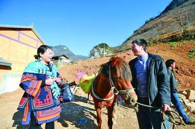 全國人大代表、四川雅安市漢源縣永利鄉(xiāng)古路村黨支部書記駱云蓮(左)在古路村六組和村民交談。新華社記者 薛玉斌攝