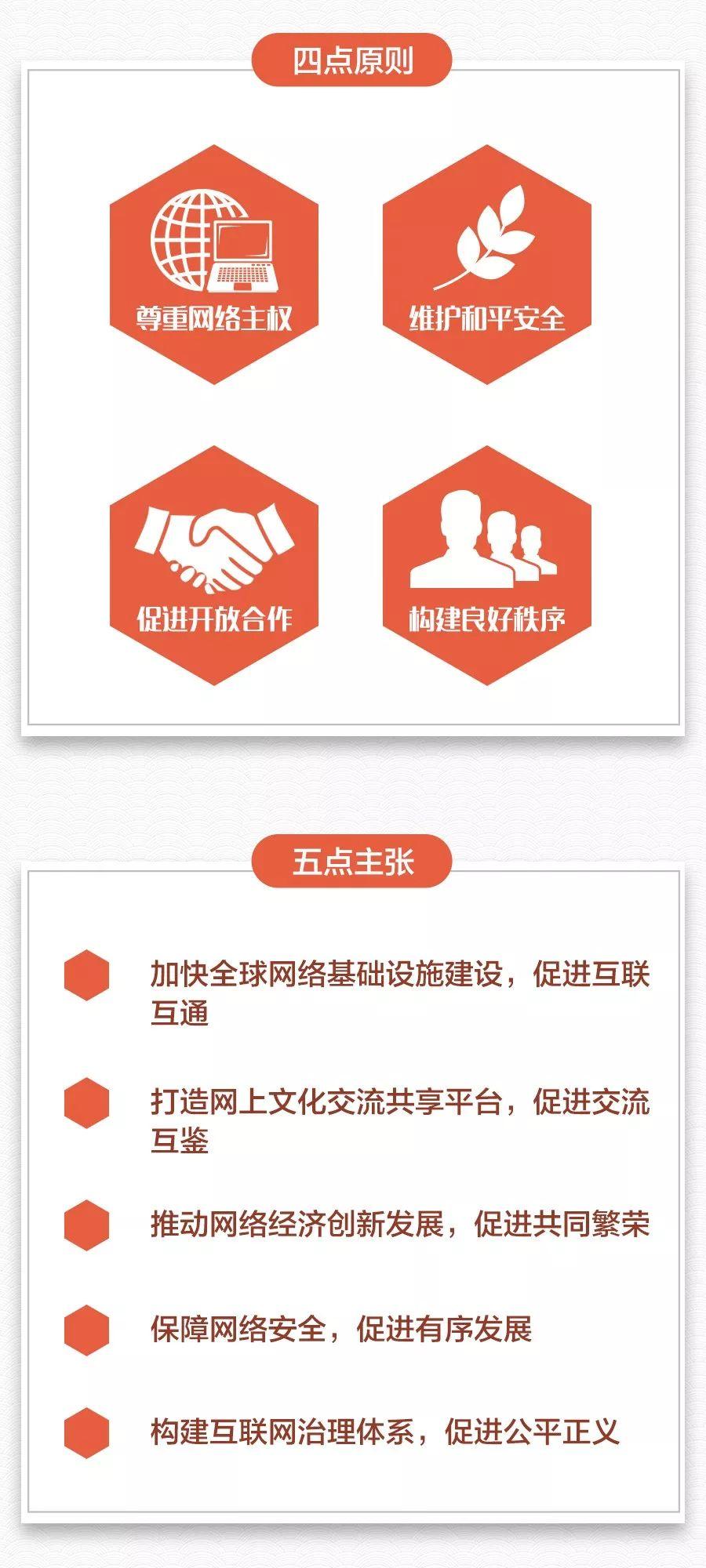 習(xí)近平曾指出,互聯(lián)網(wǎng)發(fā)展是無國(guó)界、無邊界的,利用好、發(fā)展好、治理好互聯(lián)網(wǎng)必須深化網(wǎng)絡(luò)空間國(guó)際合作,攜手構(gòu)建網(wǎng)絡(luò)空間命運(yùn)共同體。要理直氣壯維護(hù)我國(guó)網(wǎng)絡(luò)空間主權(quán),明確宣示我們的主張。為此,習(xí)近平提出“四點(diǎn)原則”和“五點(diǎn)主張” :