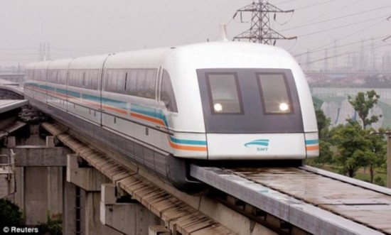 連接浦東機(jī)場(chǎng)和上海新金融區(qū)的國(guó)內(nèi)首列磁懸浮列車(圖片來源:央視網(wǎng))