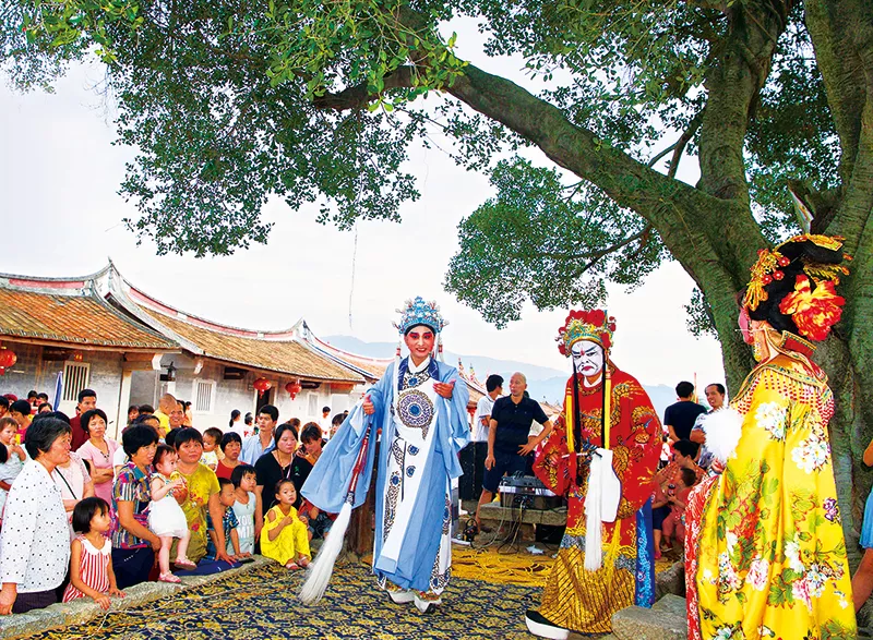 福建省龍海市東園鎮(zhèn)埭美村是閩南紅磚建筑文化的杰出代表,被稱(chēng)為“水上古村落”。近年來(lái),當(dāng)?shù)卮罅?shí)施鄉(xiāng)村振興戰(zhàn)略,對(duì)環(huán)境進(jìn)行整體改造提升,村容村貌煥然一新,鄉(xiāng)村文化發(fā)展繁榮。圖為2018年6月21日,一家薌劇團(tuán)在埭美村榕樹(shù)下表演傳統(tǒng)薌劇《貍貓換太子》,吸引眾多居民及游客。 新華社記者 姜克紅/攝