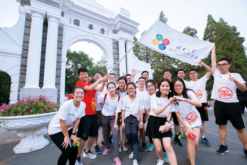每年的畢業(yè)季,清華大學(xué)都會舉行畢業(yè)長跑,即將離開母校的學(xué)子們沿著精心設(shè)計的路線,依次跑過那些承載著清華記憶的場所,重溫“自強不息 厚德載物”的校訓(xùn),上好離校前的“最后一課”。圖為2018年7月4日,畢業(yè)生們在主題為“擁抱新時代 青春正起航”的長跑活動中在二校門前合影。 清華大學(xué) 李浩然/攝