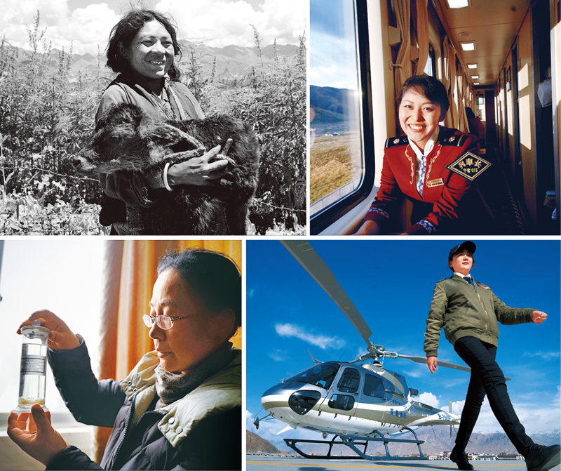 60多年來,西藏各族人民的生活條件全面改善,幸福指數(shù)大幅提升。左上圖:1959年,翻身農奴卓瑪?shù)谝淮畏值綄儆谧约旱男∨伲ㄐ氯A社記者 李長永/攝)。左下圖:2019年2月28日,研究牦牛的藏族女博士姬秋梅在西藏自治區(qū)農科院畜科所查看實驗樣本(新華社記者 普布扎西/攝)。右上圖:2007年9月28日,青藏鐵路線上的首位藏族女列車長索朗德吉(新華社記者 覺果/攝)。右下圖:2019年3月20日,來自當雄草原的藏族女直升機駕駛員益西(新華社記者 晉美多吉/攝)。