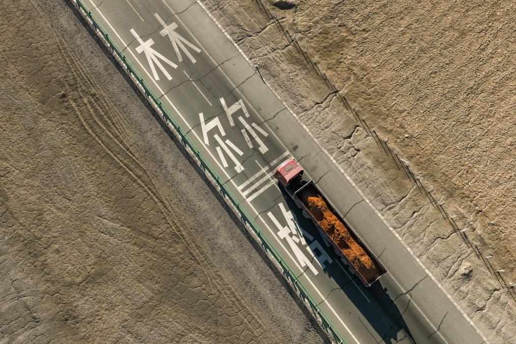 “經過改建,如今的鹽橋已經與普通柏油路沒有區(qū)別?!鼻嗪J」肪指駹柲竟范味伍L賈國平拿著石碑下方干裂翹起的一片鹽蓋說,路的最下方就是它。這條路從上到下依次是鋪筑的瀝青混凝土面層、水泥穩(wěn)定基層、砂礫層和天然鹽蓋。鹽蓋下方就是深達10至20米的結晶鹽和晶間鹵水,公路實際上就像一座橋浮在鹵水上,就此形成了“車在鹽上走,水在鹽下流”的奇觀。