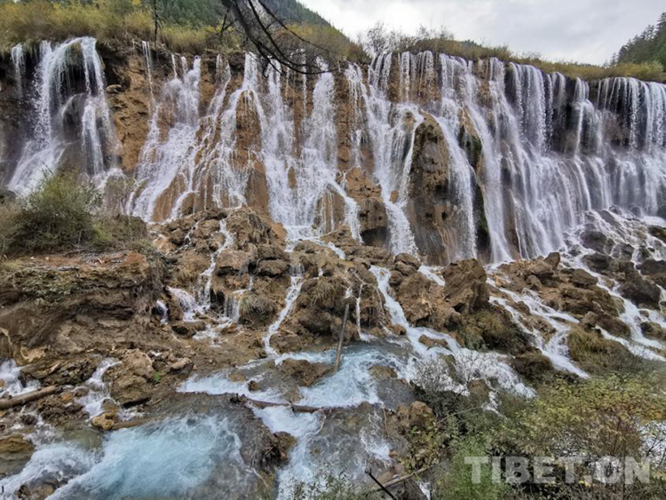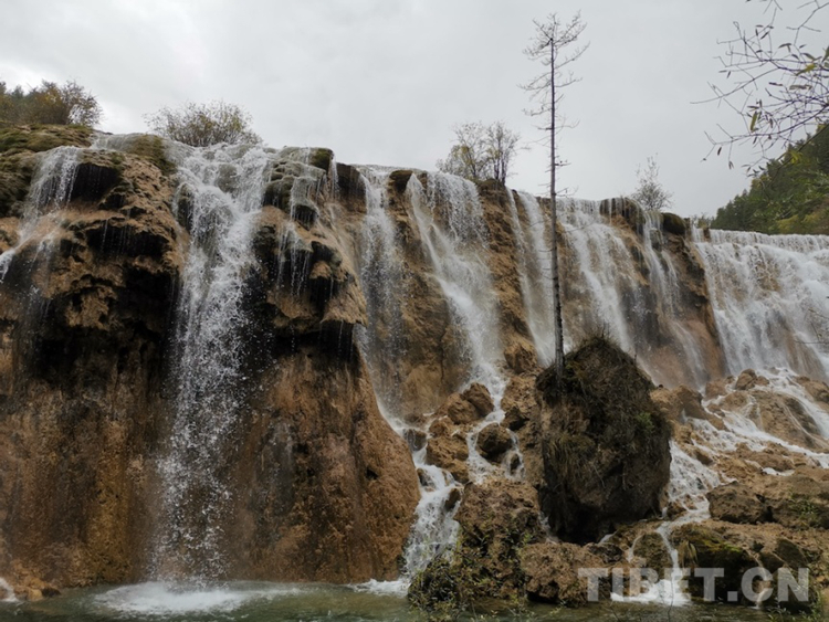 圖為諾日朗瀑布,“諾日朗”藏語意為“偉岸高大”。諾日朗瀑布是九寨溝眾多瀑布中最寬闊的一個,位于景區(qū)中心位置,常被認為是九寨溝的標志