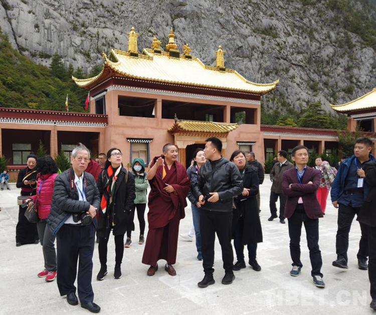 圖為海外華文媒體記者在扎如寺采訪奔卡 嘎桑仁靜活佛