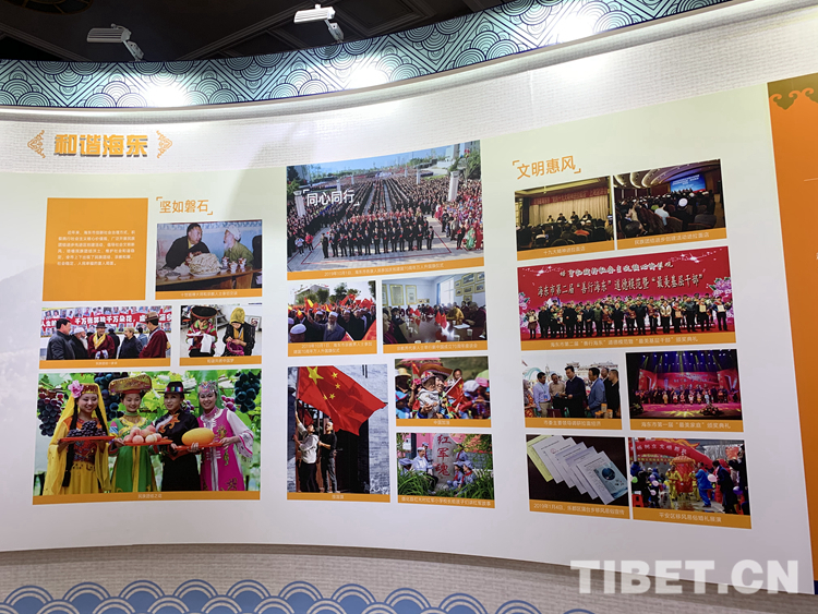 隨后,在講解員的帶領下,觀眾來到“大美青海——新中國成立70周年青海民族自治地方發(fā)展成就展”海東市主題館,參觀了由“幸福海東”“美麗海東”“和諧海東”三大板塊組成的圖文展覽。