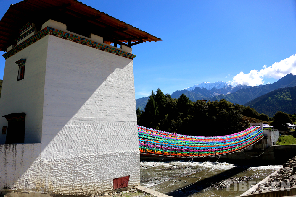 圖為魯朗小鎮(zhèn)景區(qū)旁的“網紅橋”上掛滿了顏色各異的風車 攝影:王佳豪
