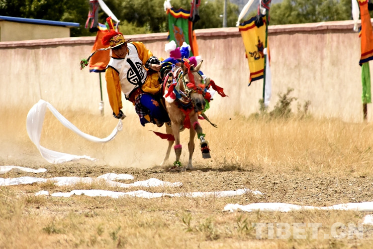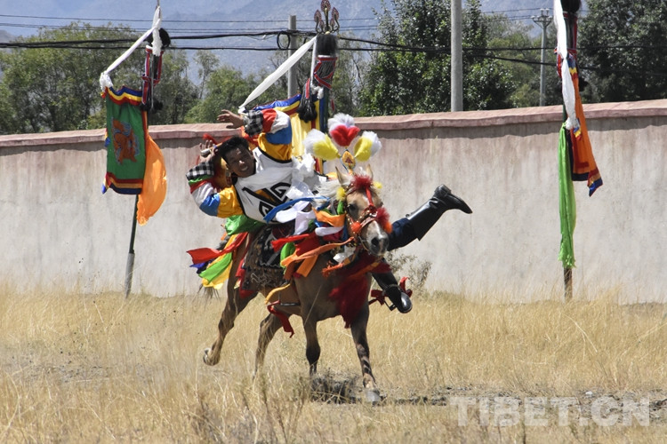 伴隨著一聲令下,騎手們駕著馬匹風馳電掣般在賽道上飛奔,有的一邊騎馬一邊拉弓搭箭,準確地射中箭靶;有的在騎馬過程中展示俯身撿物等特技動作,引來陣陣喝彩聲。賽馬結(jié)束,一條條潔白的哈達、一杯杯青稞酒,獻給英勇的騎手,表達村民真誠的禮贊與祝福。(中國西藏網(wǎng) 記者/拉姆 實習生德吉卓嘎)