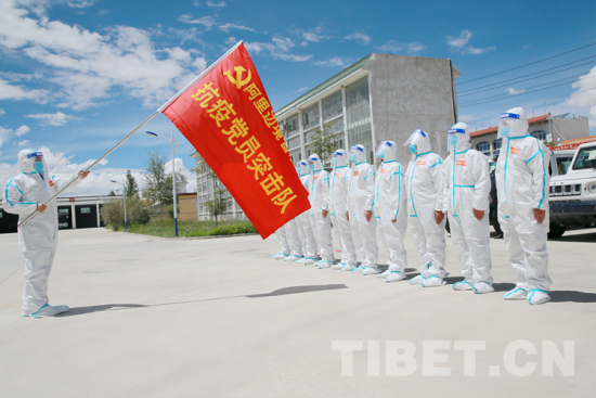 圖為阿里邊境管理支隊“抗疫黨員突擊隊”揮旗出發(fā) 攝影:張拴根
