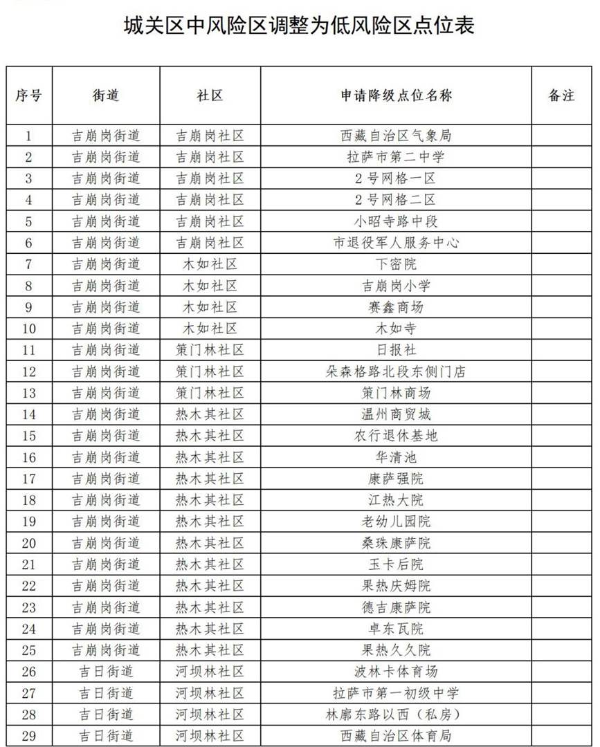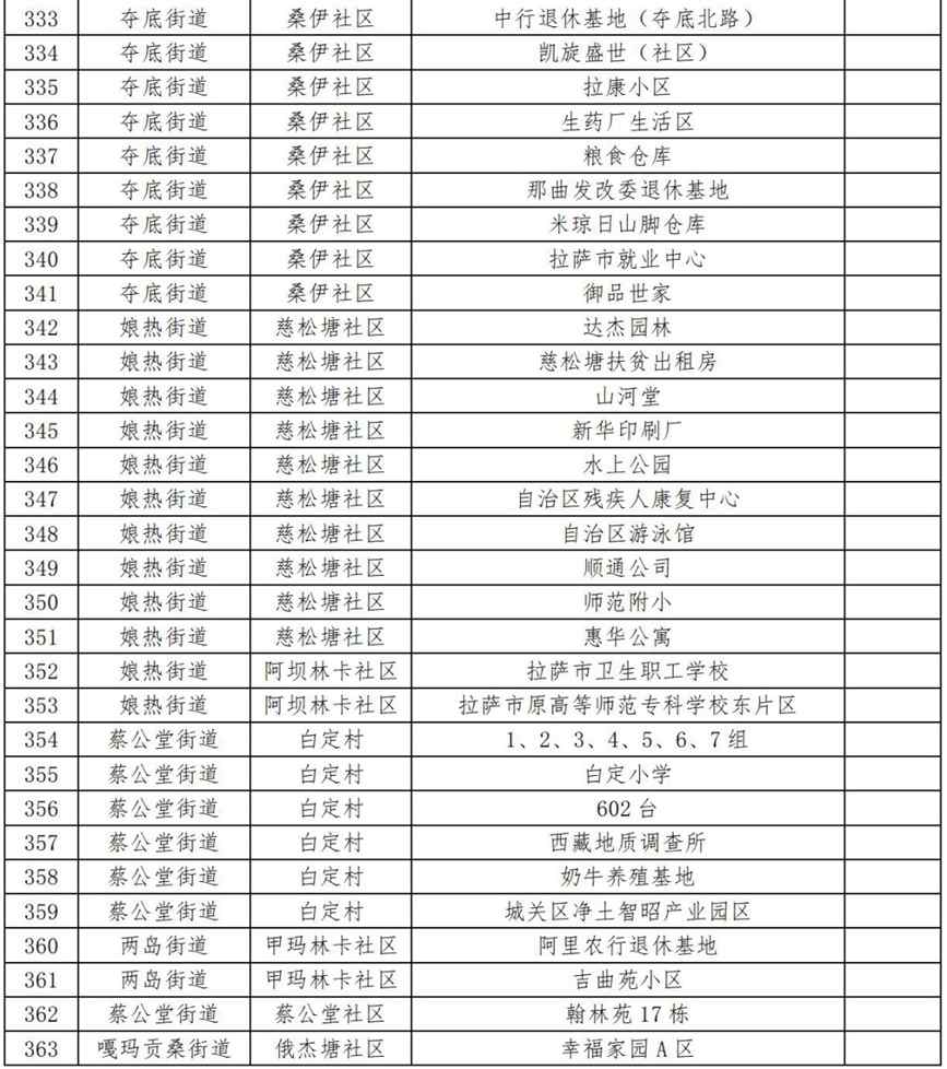 1.高風(fēng)險(xiǎn)區(qū)“拉薩之窗及其周邊”包括拉薩之窗、麗楓酒店,現(xiàn)已全部降為中風(fēng)險(xiǎn)區(qū);