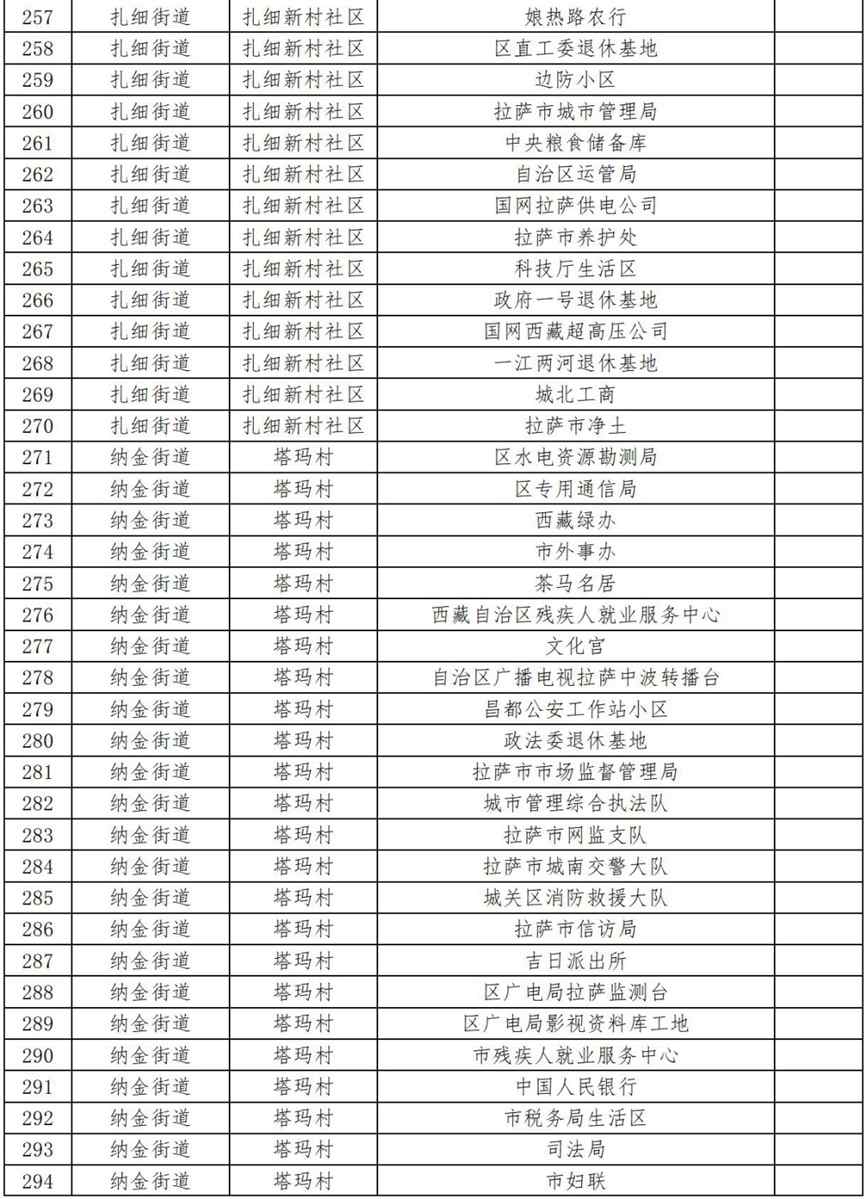 18.扎細(xì)街道雄嘎社區(qū)(自治區(qū)鄉(xiāng)村振興局、自治區(qū)外事辦、童嘎語言學(xué)校、拉薩市人社局、自治區(qū)電力科學(xué)研究院、拉薩支隊(duì)生活區(qū));