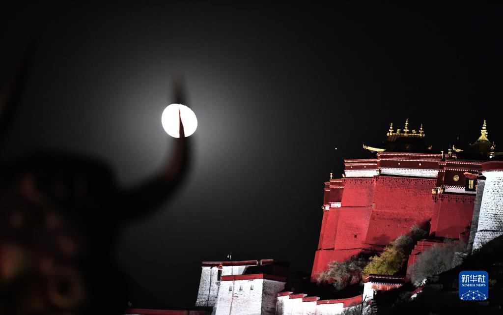 11月11日晚,一次賞心悅目的火星合月亮相天宇。這是在西藏拉薩市布達(dá)拉宮附近,記錄下的這幕“星月童話”。新華社記者 劉潁 攝