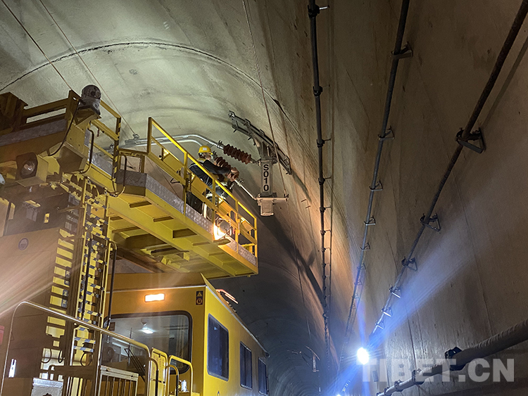 中國西藏網(wǎng)訊 初冬時節(jié),雅魯藏布江畔,秋葉繽紛、層林盡染。在穿山過江的拉林鐵路桑珠嶺隧道內(nèi)機(jī)器轟鳴、人聲鼎沸。11月14日10時25分,中國鐵路青藏集團(tuán)有限公司拉薩基礎(chǔ)設(shè)施段桑日綜合維修車間的接觸網(wǎng)工陳世召頭戴安全帽、身穿防雨服、腳踩絕緣靴,手中的高壓水槍迸射出道道白色弧線。