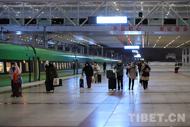 圖為11月21日清晨,旅客在拉薩火車(chē)站站臺(tái)準(zhǔn)備乘車(chē) 攝影:李海星