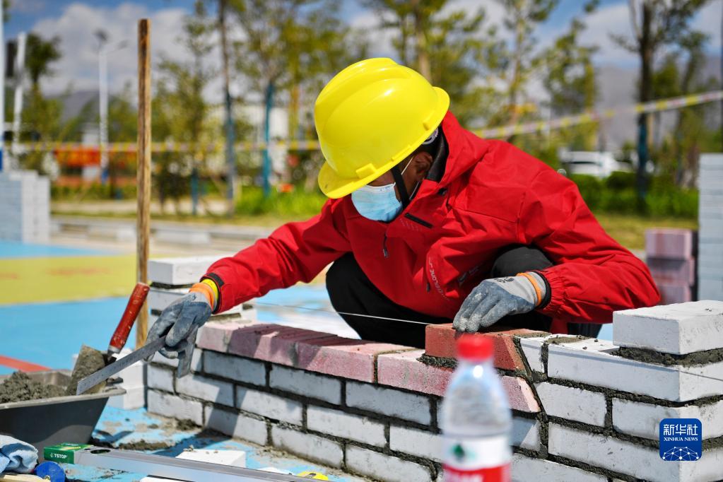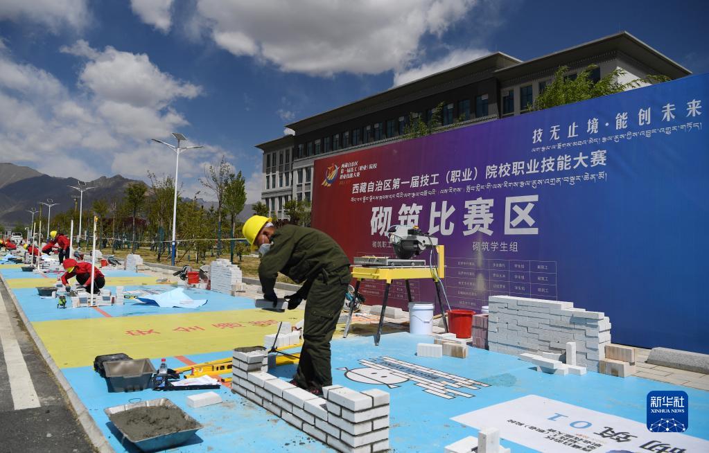 5月10日拍攝的西藏自治區(qū)第一屆技工(職業(yè))院校職業(yè)技能大賽砌筑比賽現(xiàn)場(chǎng)。新華社記者 張汝鋒 攝