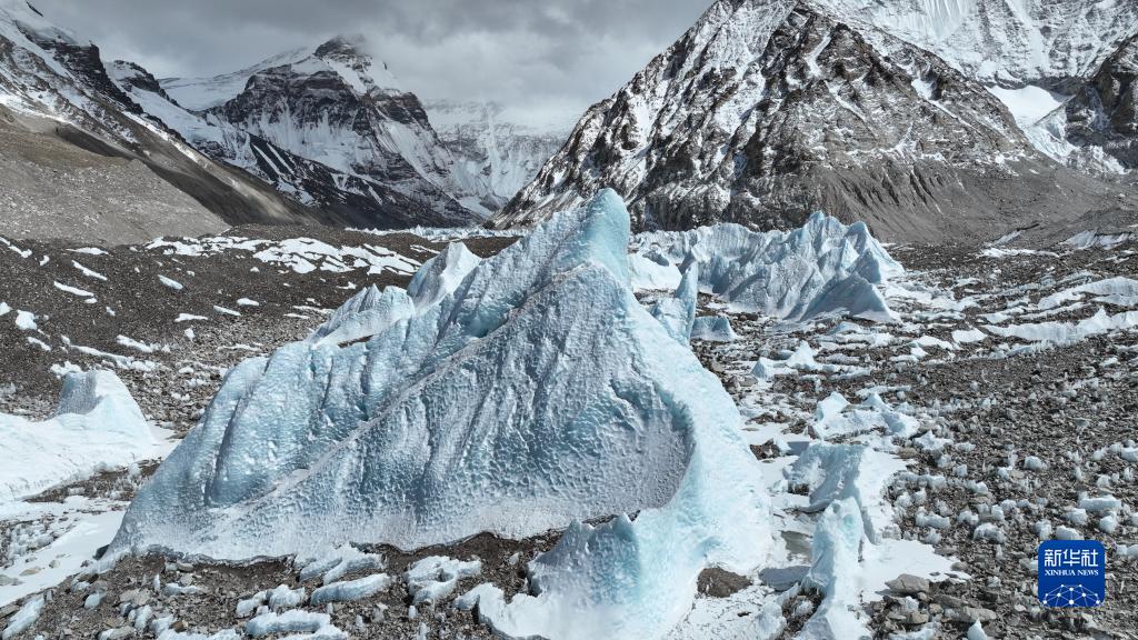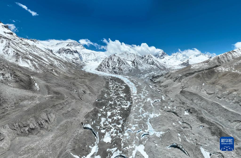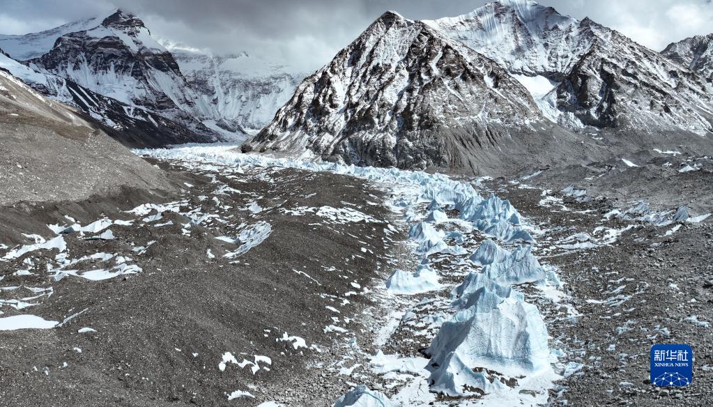 這是珠峰腳下的中絨布冰川(5月15日攝,無人機照片)。新華社記者 孫非 攝